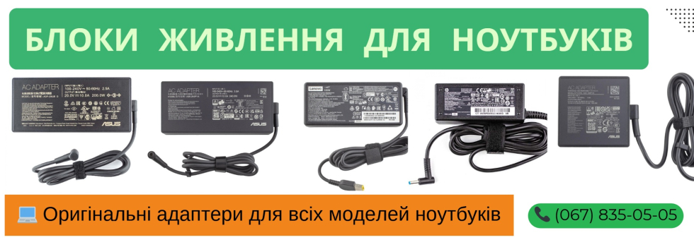 Пропонуємо оригінальні та сумісні блоки живлення для всіх брендів ноутбуків: Asus, HP, Lenovo, Dell, Acer, Toshiba, Samsung, MSI. Підбір під вашу модель за напругою та струмом. Гарантія якості та доступні ціни.